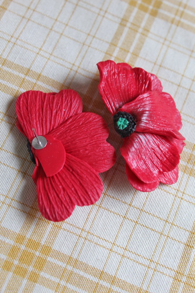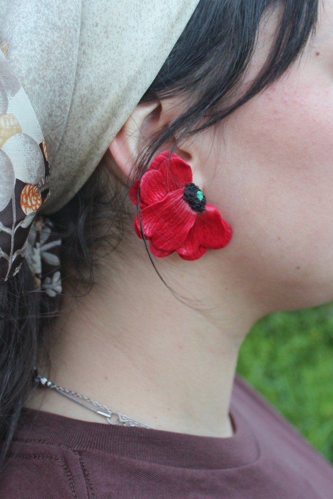 Pendientes en forma de media amapola pegada a la oreja, ideales para las amantes de pendientes grandes.